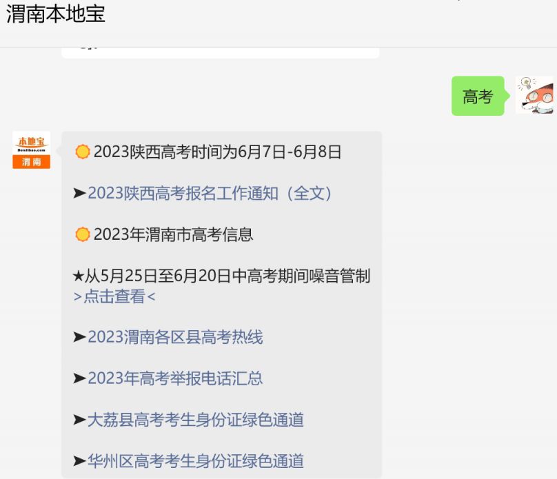 温馨提示:微信搜索并关注【渭南本地宝】公众号,聊天对话框回复【高考】可获取渭南高考最新政策及相关通知。